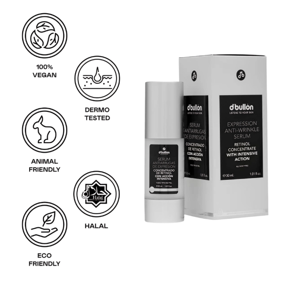 مجدد وفعال للغاية لمكافحة علامات التعبير والتجاعيد وفقدان الحزم وقلة المرونة. تم تركيب مصل الوجه هذا، الذي يحتوي على تركيز الريتينول ومفعوله المكثف، من مكون نباتي نشط مضاد للشيخوخة يحد على الفور من التقلصات الدقيقة التي تسبب تجاعيد الوجه لاحقًا. وهذا يحقق انخفاضًا ملحوظًا في عمق التجاعيد وتنعيم البشرة. بالإضافة إلى ذلك، فهو يحتوي على فيتامين أ، المعروف أيضًا باسم الريتينول ، والذي يزيد من تطور خلايا جديدة في البشرة، وبالتالي يعمل أيضًا كعامل وقائي لها. فهو يمنع تخليق الدهون، وبالتالي ينظم الزهم وينظم تكاثر الخلايا الكيراتينية.
